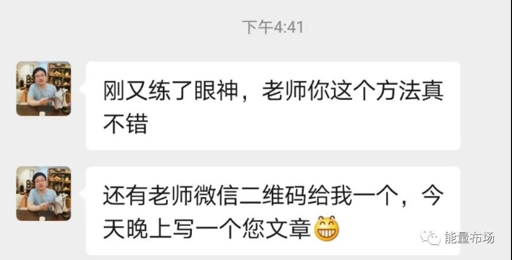 前几天一个互联网的大咖Peter老师(当年他刚毕业第2年就利用互联网赚了一百多万)来拜访我,我发现他的眼睛不够有神(互联网人的通病,熬夜加上看太多电脑手机,缺乏锻炼),简单教了他一招,他回去练了几天,就和我说效果很好。